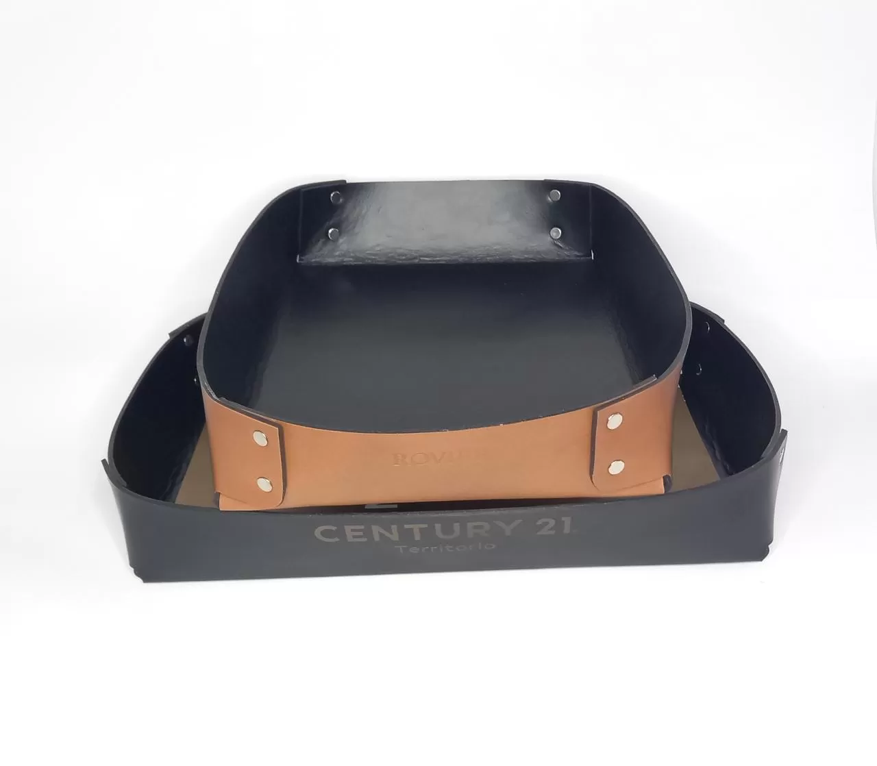 2. HOT STAMPING CON INICIALES, en tono plateado y dorado es otra opción de personalizado de los productos ROVIER. Mediante una máquina especializada que genera calor, con moldes de letras que tenemos disponibles y ejerciando presión sobre el cuero, podemos sellar los productos con iniciales de hasta 3 letras. Ideal para llaveros, billeteras, tarjeteros, etc.