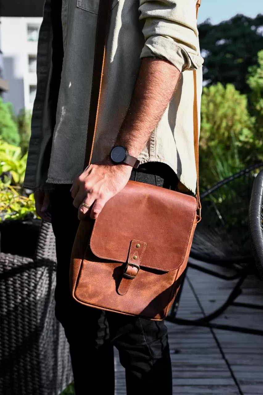 La Bandolera Espartana de ROVIER 100% CUERO es la compañera ideal para el hombre moderno que valora el diseño clásico y la durabilidad. Fabricada en cuero envejecido de alta calidad, esta pieza destaca por su carácter rústico, elegante y resistente.