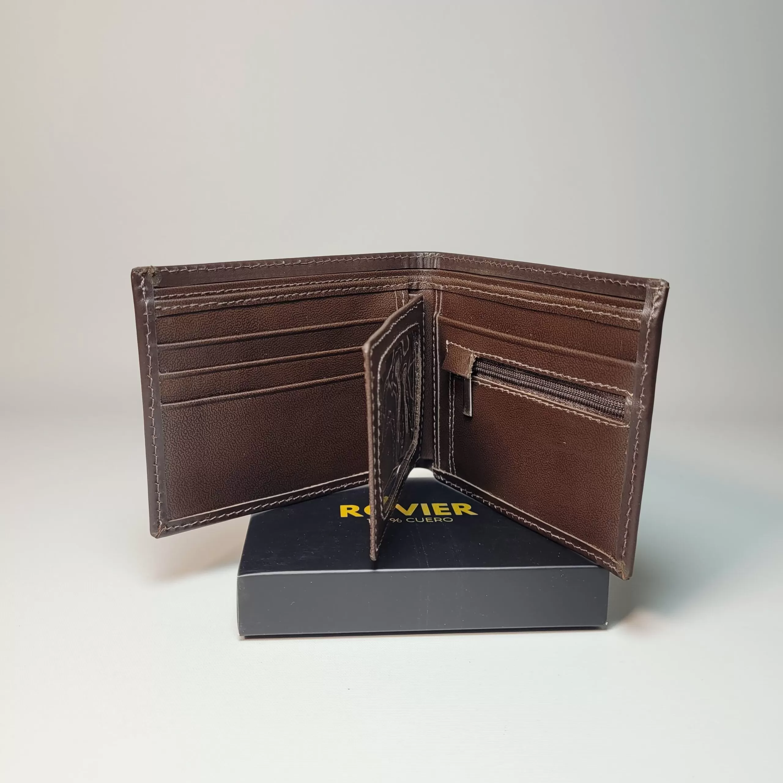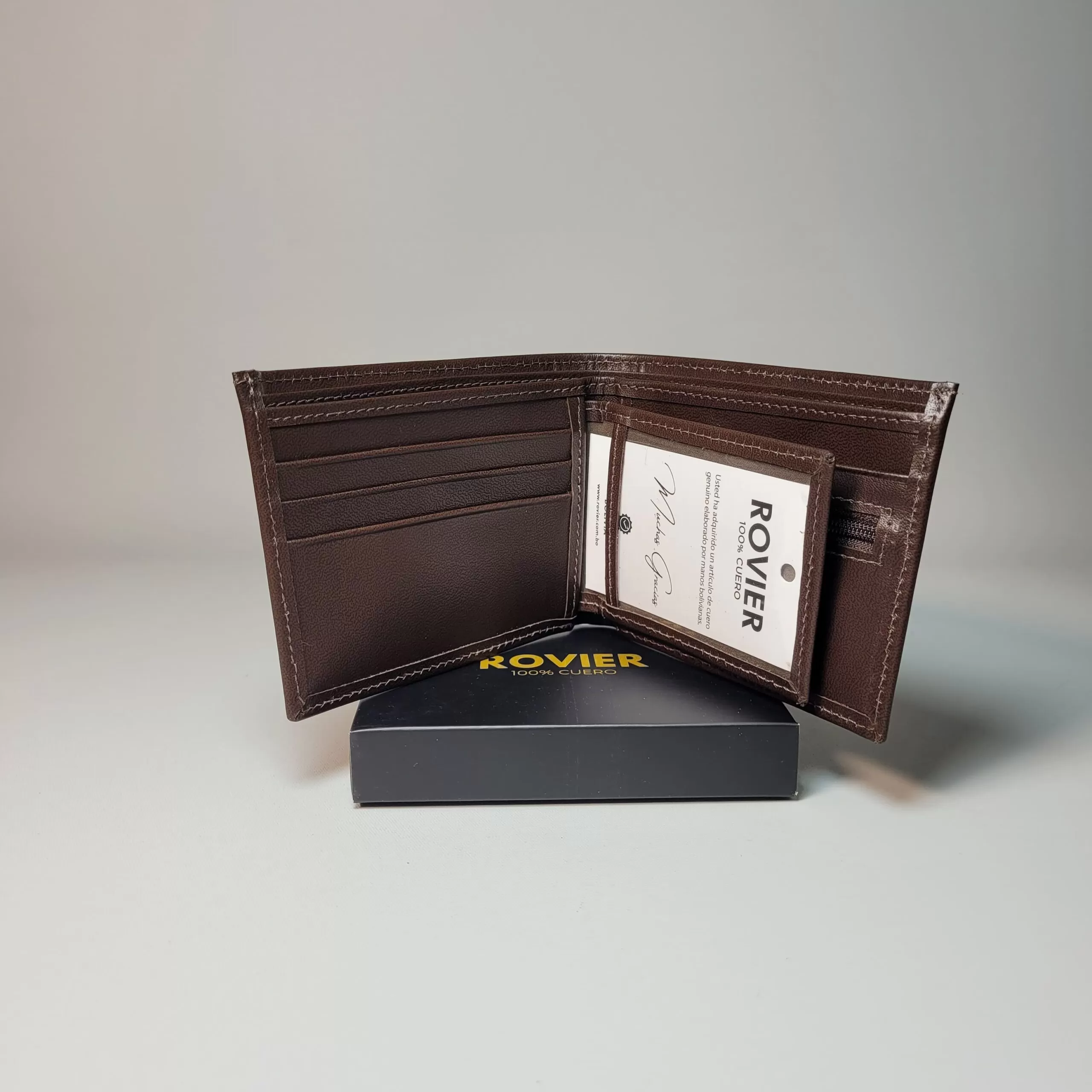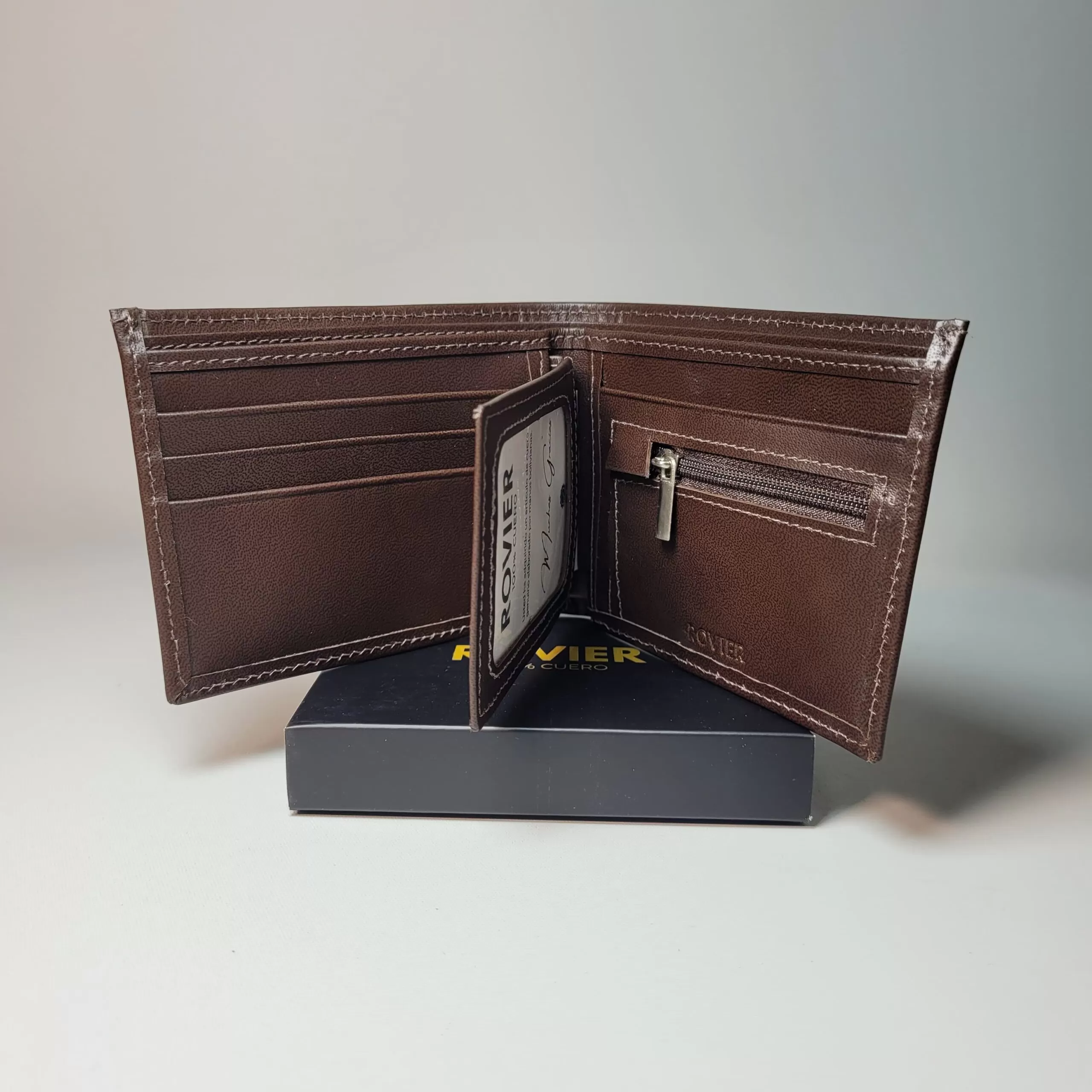 La billetera BOSTON XL es ideal para quienes necesitan mayor capacidad sin perder elegancia. Fabricada en cuero genuino, ofrece espacio para 3 tarjetas, un monedero interno con cierre, compartimiento transparente para documento o identificación, y dos divisiones centrales para billetes. Su diseño amplio y práctico la convierte en una billetera robusta y cómoda para el uso diario.