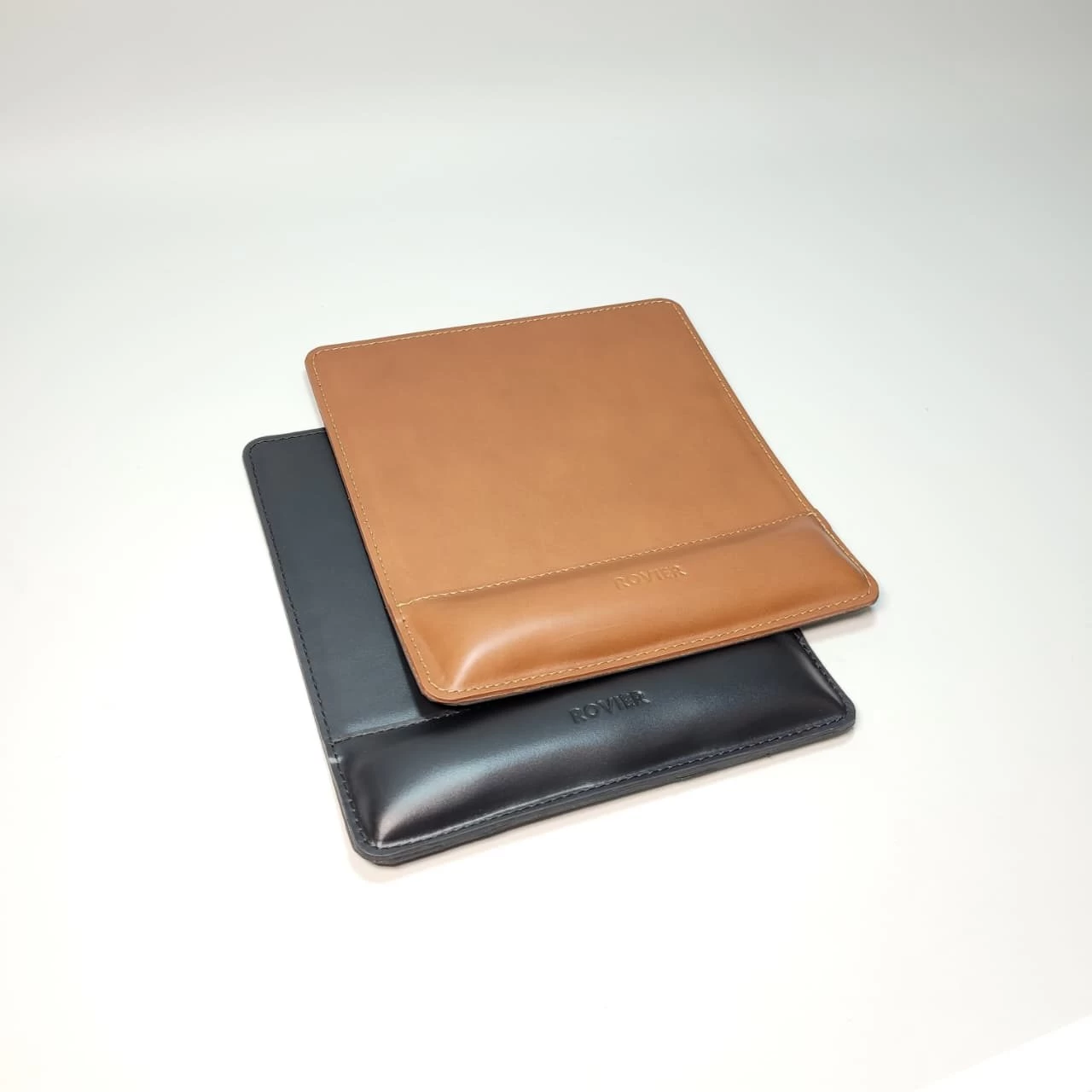 Mousepad cuadrado de cuero genuino (22x20cm) con apoyador esponjado y base antideslizante. Elegancia, comodidad y protección para tu escritorio.